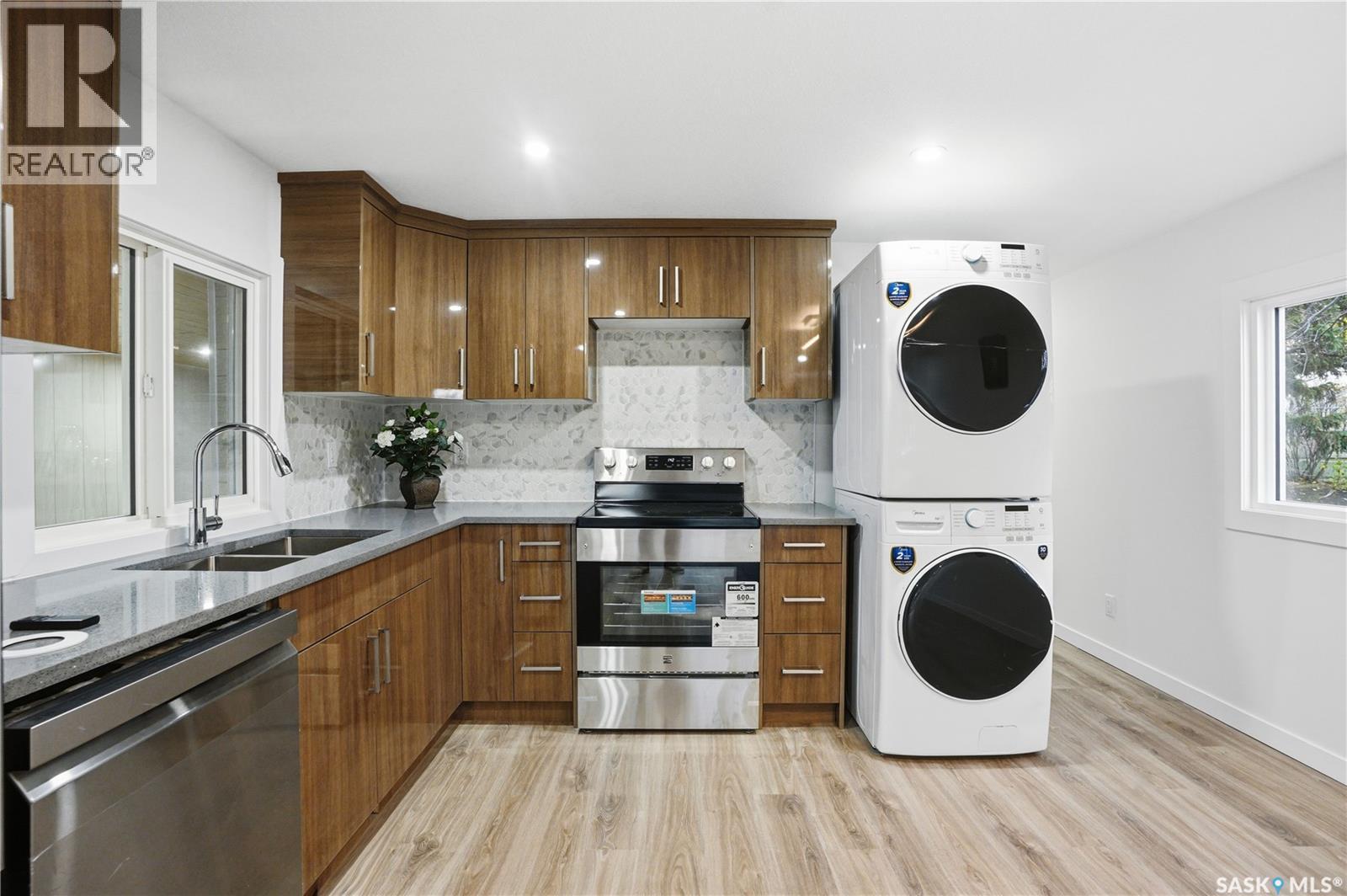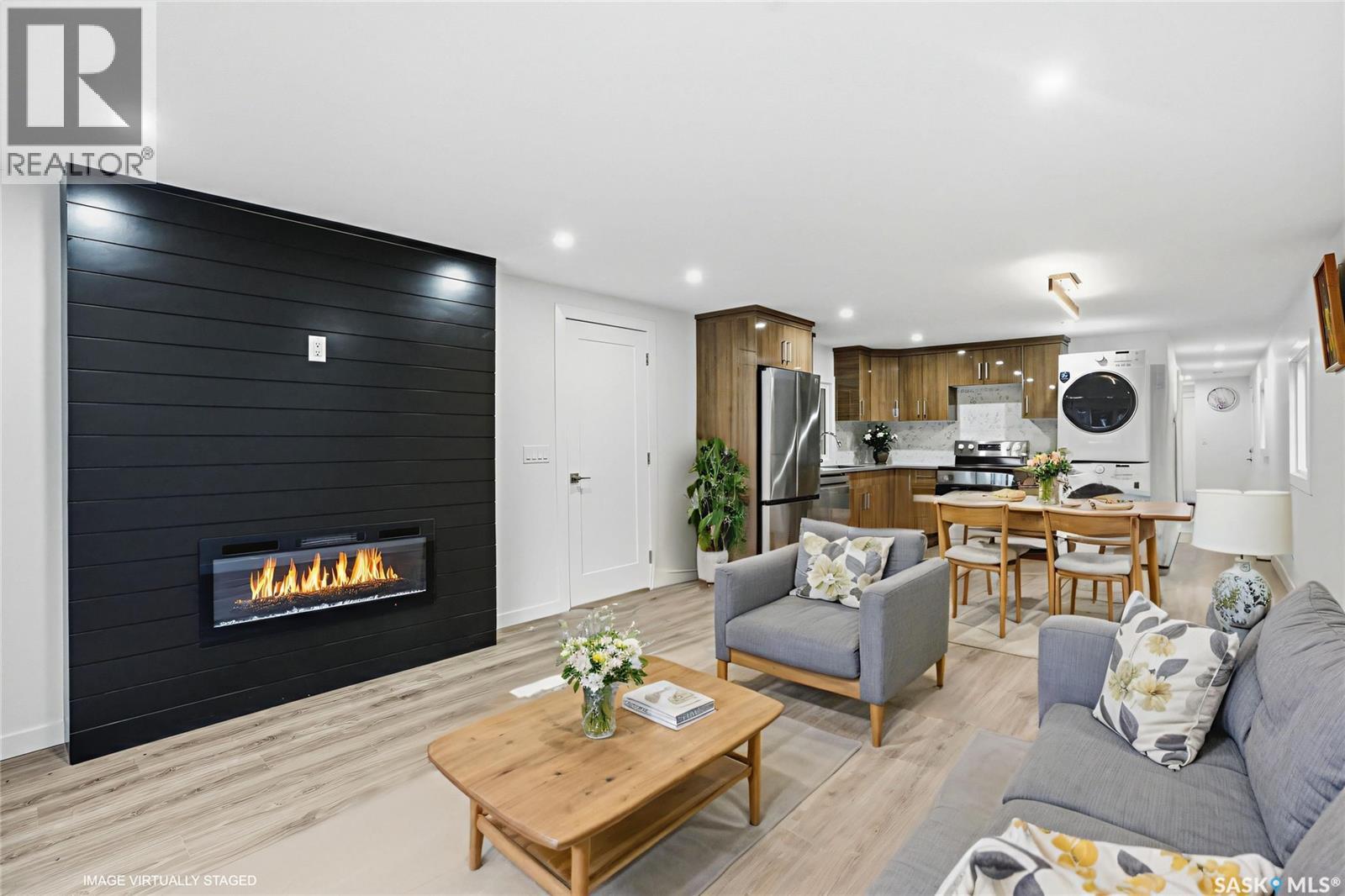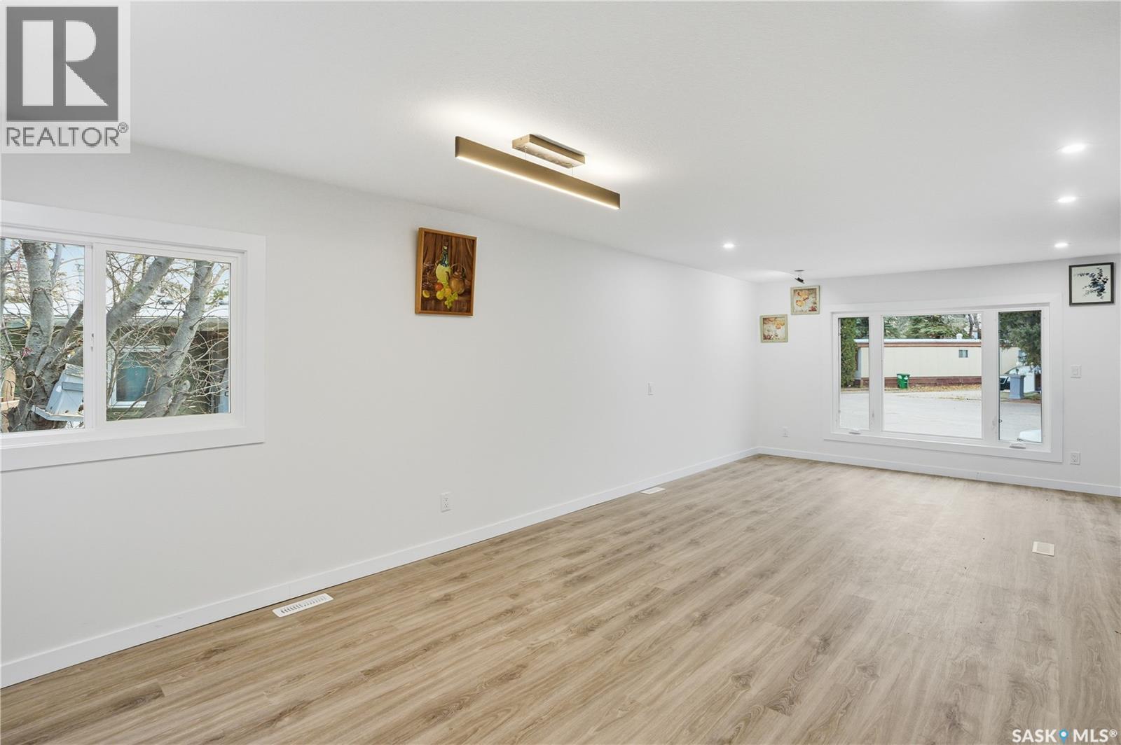 A backyard that feels like your own private park! This beautifully renovated mobile home sits on one of the best lots in the entire community, backing directly onto green space, ball diamonds, and a gorgeous park setting. It’s rare to find this much space and privacy on Saskatoon’s east side, especially at this price point. Inside, you’ll find over 1,200 sq. ft. of bright, modern living space that’s been updated from top to bottom. Everything’s been done from the newer furnace, air conditioner, and windows to the sleek kitchen with quartz counters, tile backsplash, soft-close cabinets, and stainless steel appliances. The open layout feels warm and welcoming with luxury vinyl plank flooring, pot lighting, and a cozy electric fireplace that ties it all together. There’s also an oversized family room, perfect for an office, playroom, or extra lounge space. The main bathroom features dual sinks and the primary bedroom has a stylish feature wall that adds character. Outside, enjoy two new decks, one for morning coffee, one for evening BBQs and a yard so big it honestly feels like your own park. Lot fees cover water, sewer, snow removal, garbage pick-up, and park maintenance, so you can just move in and enjoy. If you’re looking for something move-in ready with unbeatable space, style, and location, this is a must-see. Homes like this, especially with a yard like that, don’t come around often! Park is managed by ICR and lot fees currently $1158/month and include property taxes, water, sewer, park maintenance, snow removal, garbage/recycling pick-up. (id:4069)